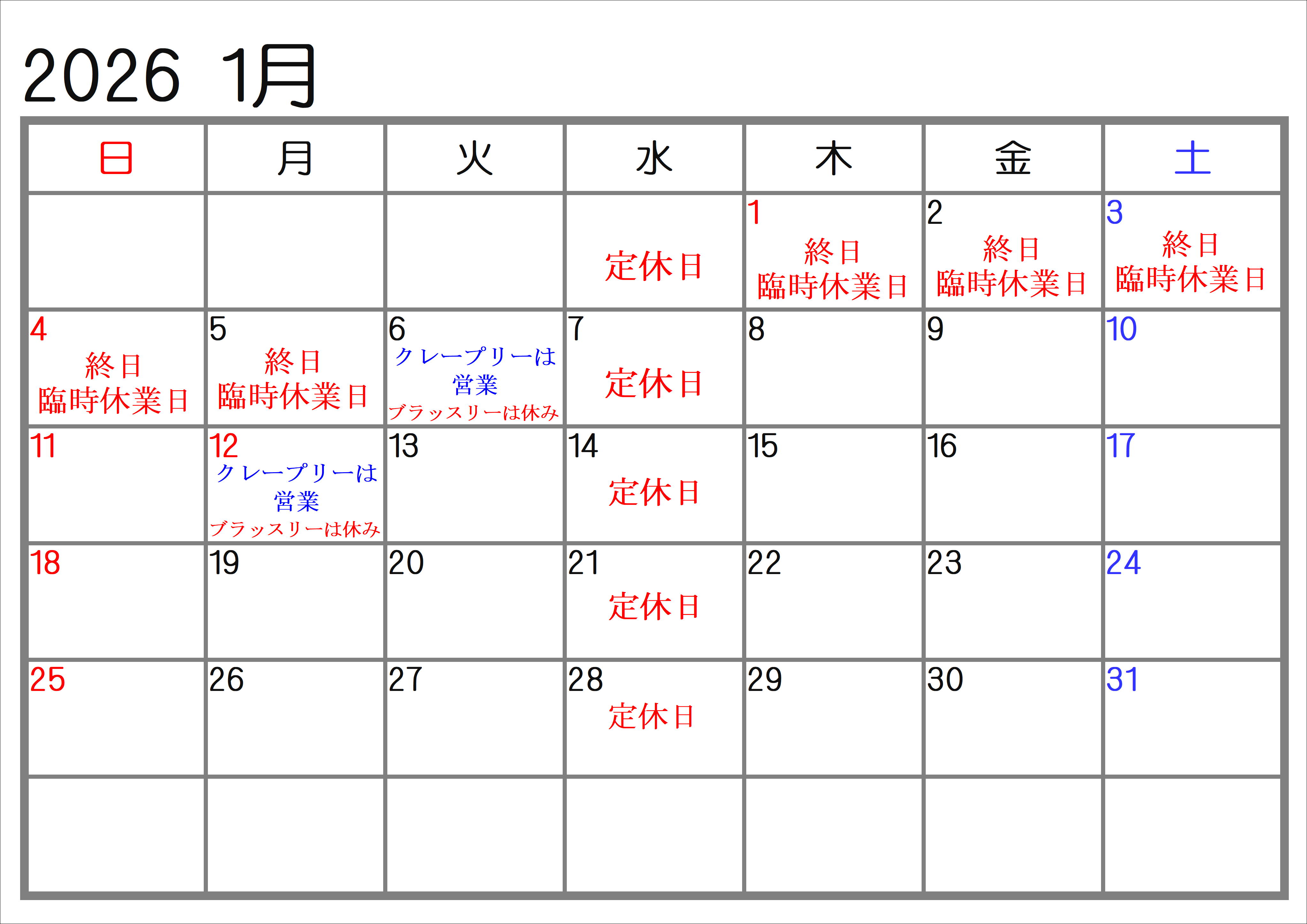 ※定休日・毎週 「水曜日」と「日曜日と祝日のブラッスリー」